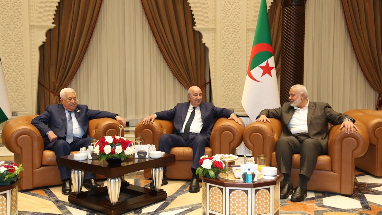 Palestinian rivals Abbas, Haniyeh shake hands in Algeria