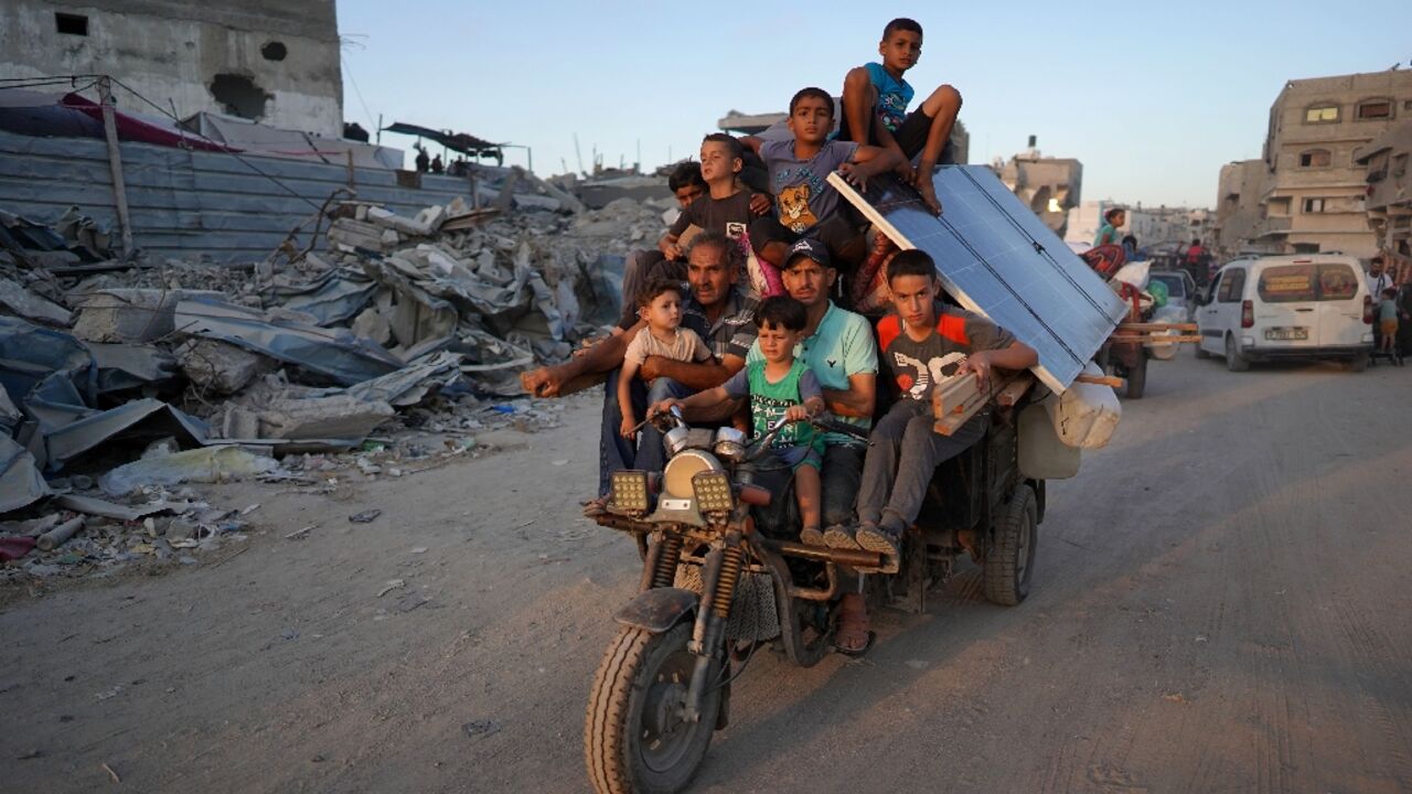 More Palestinians escaped from eastern Khan Yunis, travelling by car, on foot, or by horse or donkey carts, carrying their belongings, an AFP photographer said.