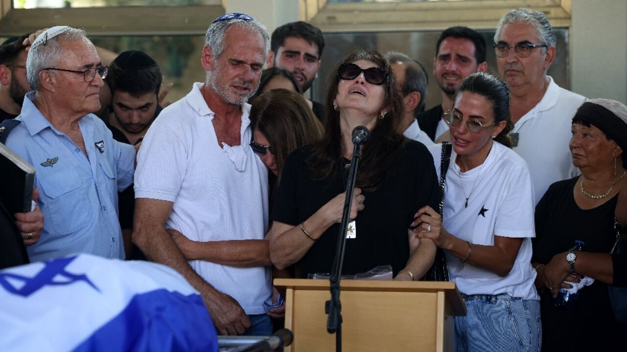 "Almog, my dear son, how much hope we had, how much we prayed that we would get the chance to see you again, to hug you, to enjoy your smile," Almog Sarusi's mother Nira said at the lectern during her son's funeral in the city of Raanana in central Israel.