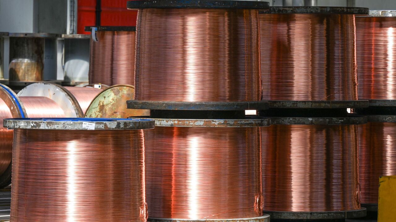 This photograph shows rolls of copper wires stored at the Nexans manufacture in Lens, northern France, on May 11, 2022. - The French cable company is the only one in its sector to have its own copper foundry in Lens. This plant represents a competitive advantage for Nexans at the dawn of an explosion in demand for electrical cables. (Photo by DENIS CHARLET / AFP) (Photo by DENIS CHARLET/AFP via Getty Images)