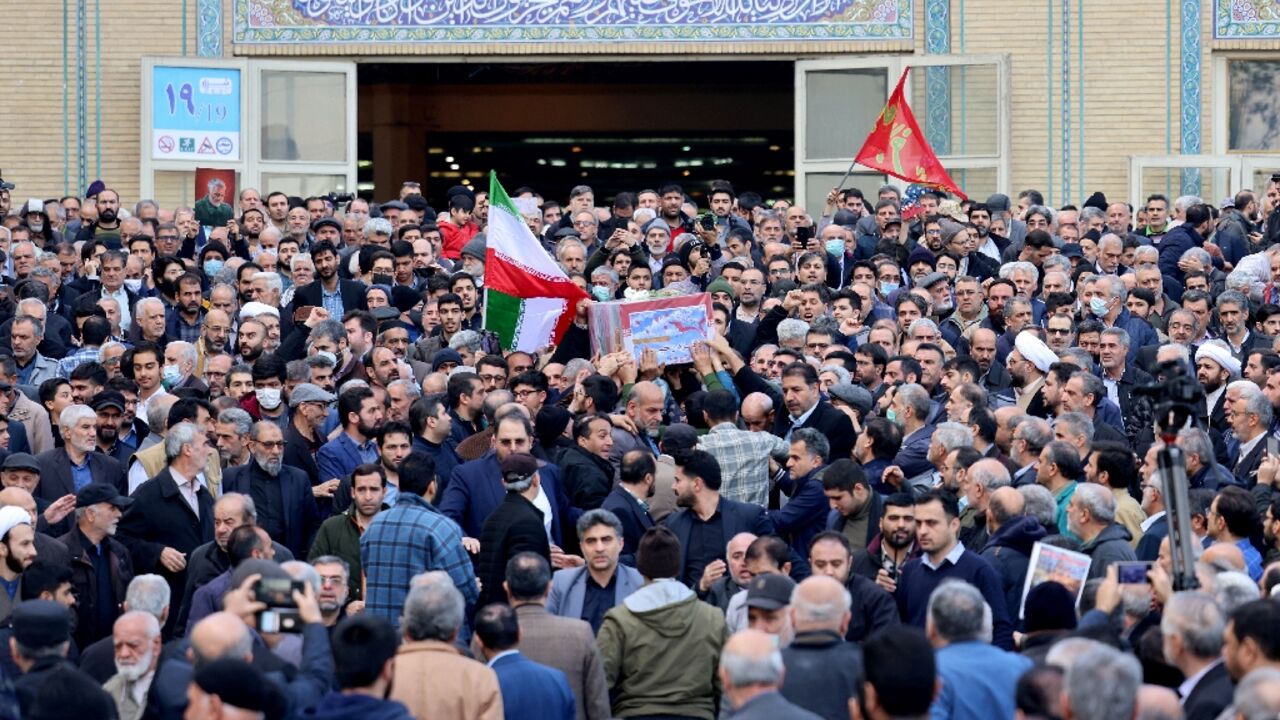 Friday's funeral took place at the Emam Ali mosque in Kerman, where crowds gathered in front of dozens of coffins wrapped in the Iranian flag, state media said.