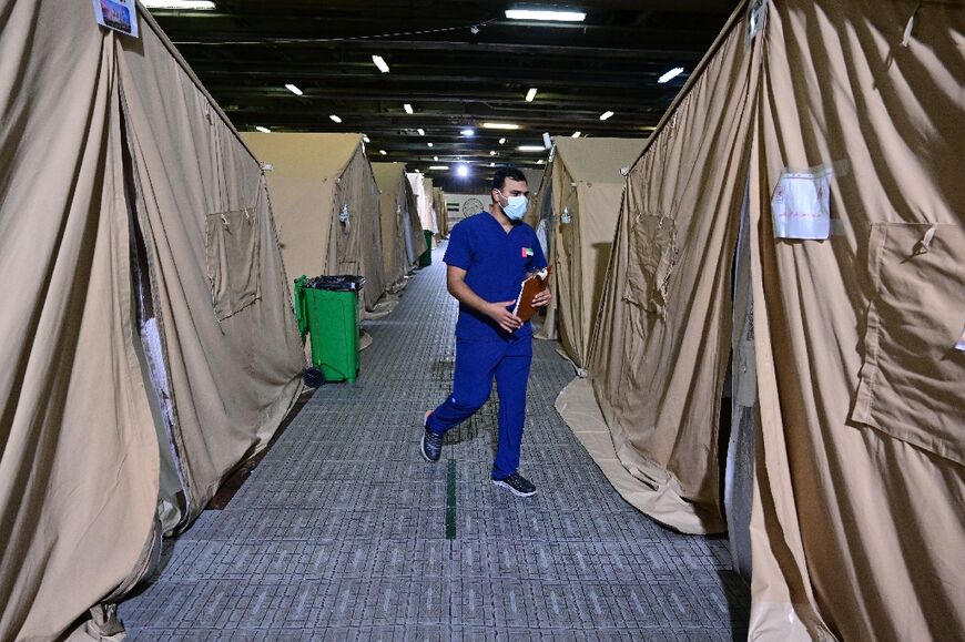 About 2,400 people have been treated at the temporary facility, whose rows of tents below deck hold about 100 patients at a time, says deputy medical director Abdullah al-Zahmi.