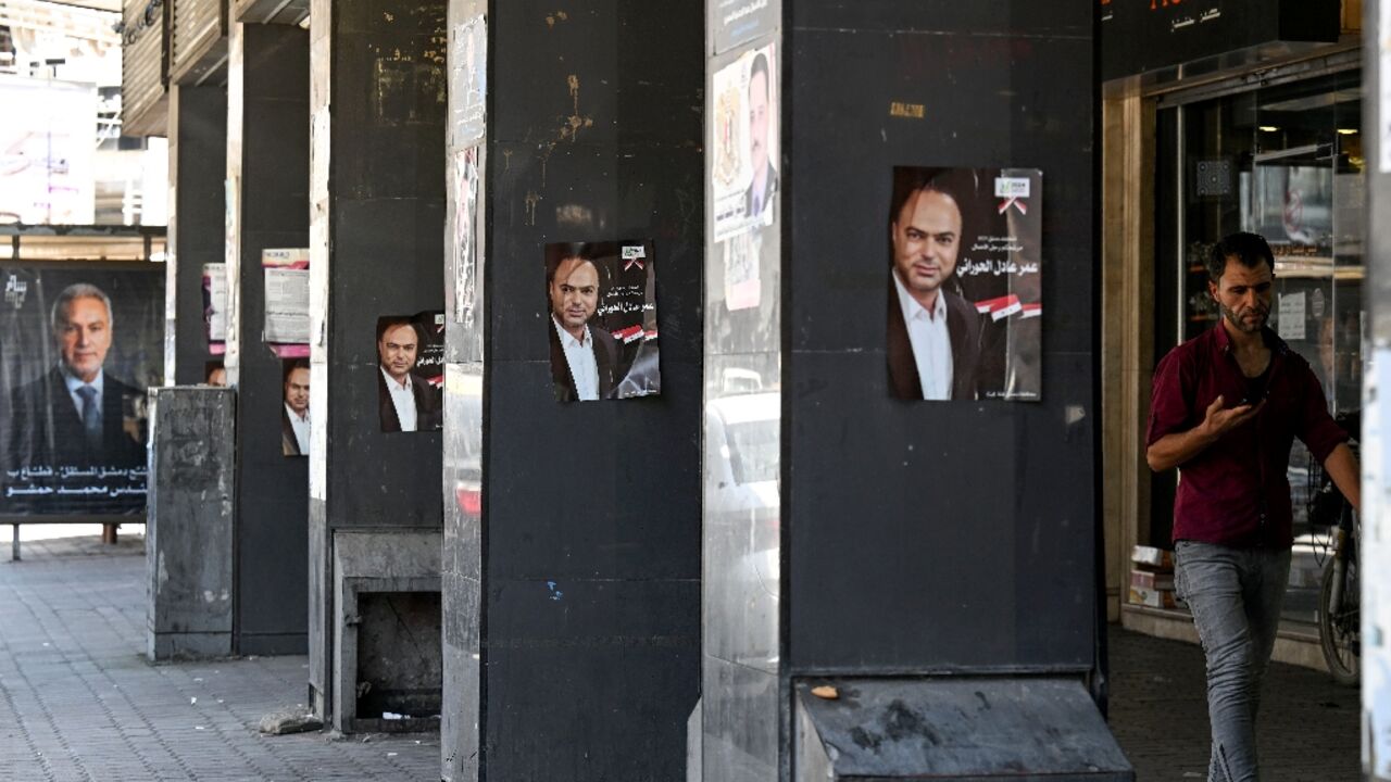 Outside his photography studio in central Damascus, candidates have put up campaign posters promising to revive the economy.