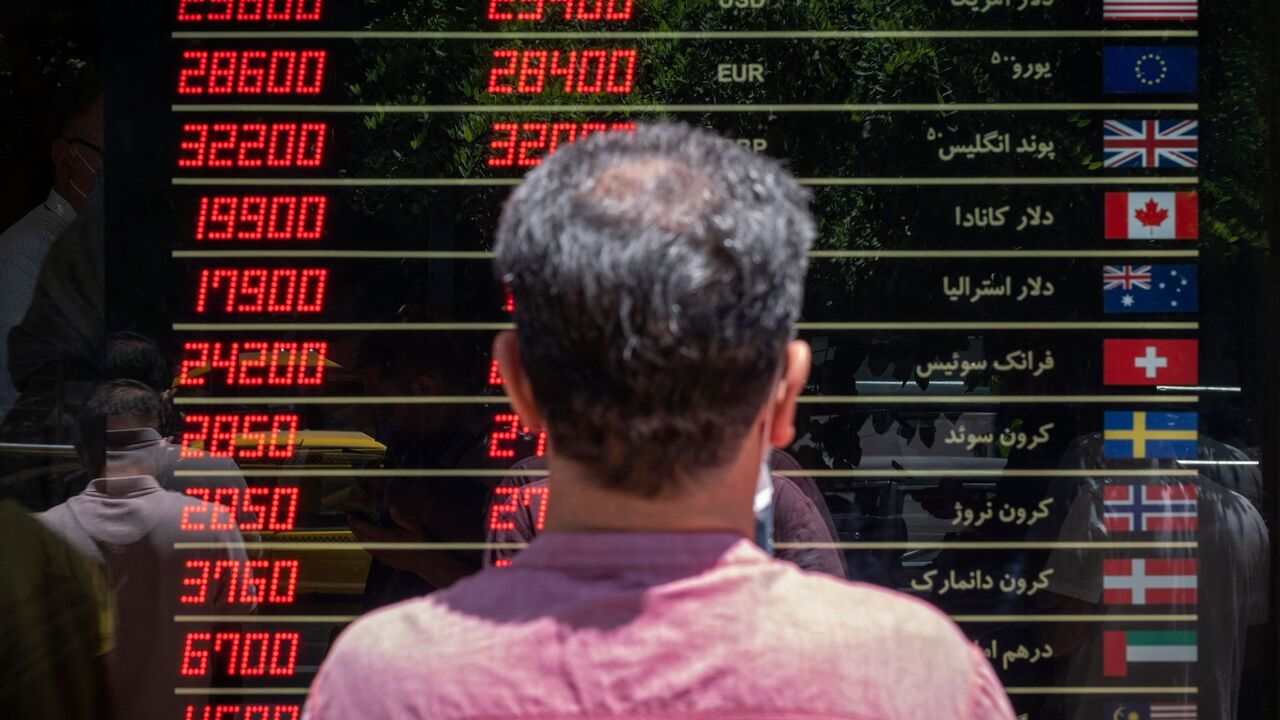 An Iranian man looks looks at currency exchange rates outside a shop in downtown Tehran on June 15, 2021. - Iran holds a presidential election on June 18, with ultraconservative Ebrahim Raisi, who heads the judiciary, most likely to win from the seven candidates. (Photo by MORTEZA NIKOUBAZL / AFP) (Photo by MORTEZA NIKOUBAZL/AFP via Getty Images)